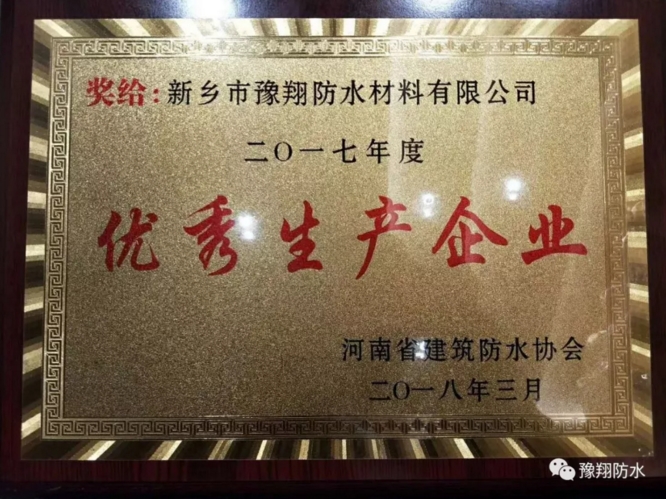 熱烈祝賀我司被<河南省建筑防水產(chǎn)品質(zhì)量提升大會(huì)>評為:2017年度***生產(chǎn)企業(yè)獎(jiǎng)。我們豫翔人將不忘初心,不負(fù)眾望,把產(chǎn)品質(zhì)量繼續(xù)升級,做出精品回報(bào)社會(huì)。攜手豫翔,鑄就輝煌!